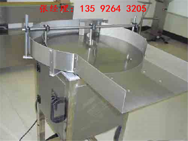 2.擰蓋機通過減速機帶動回轉(zhuǎn)盤轉(zhuǎn)動。使蓋在離心力的作用下從出蓋口離開料斗。在出口處有正反蓋分離裝置,當(dāng)反蓋經(jīng)過時,蓋自動落入返回管道中,通過風(fēng)力自動把反蓋吹入料斗。只有正蓋才能順利進滑道內(nèi),料斗內(nèi)的蓋量通過光電開關(guān)自動檢測來控制輸蓋機,以保證下蓋達到佳效果。當(dāng)正蓋進入滑道后即可順利進入喂蓋盤,為防止意外,在滑道上同時配置了一個防反蓋的撥盤,確保進入喂蓋盤的蓋正確,在滑道上還配置了一對光電開關(guān),當(dāng)檢測到無蓋時,就立即停止主機。為了有效剔除無防盜圈的壞蓋及清理料斗時的余蓋,在料斗出口正對面有一活動出口可滿足此功能。擰蓋為磁力擰蓋,具有過載保護功能,且擰蓋力矩穩(wěn)定可靠。封蓋無啃蓋、高蓋、歪蓋、卷邊現(xiàn)象。