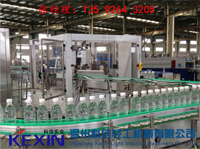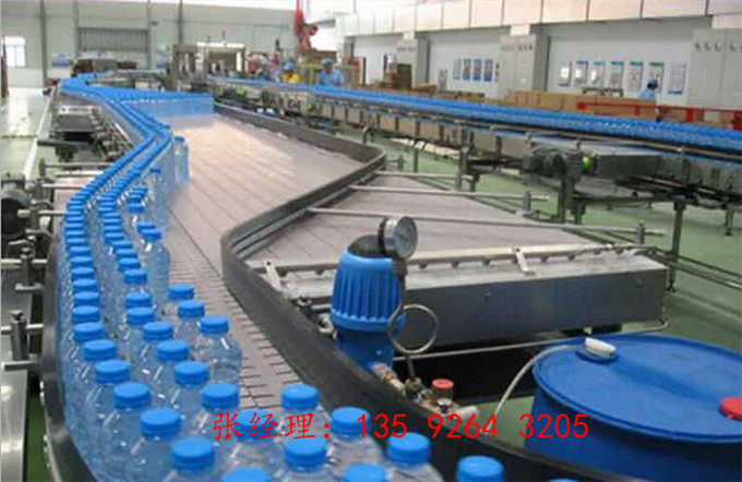 純凈水制水設(shè)備.吹瓶機.理瓶機.進瓶風道.礦泉水灌裝設(shè)備.自動上蓋機.在線式瓶蓋消毒器.出瓶輸送.燈檢設(shè)備.噴碼機.套標機(或貼標機).膜包機(或紙箱包裝機).碼垛機。