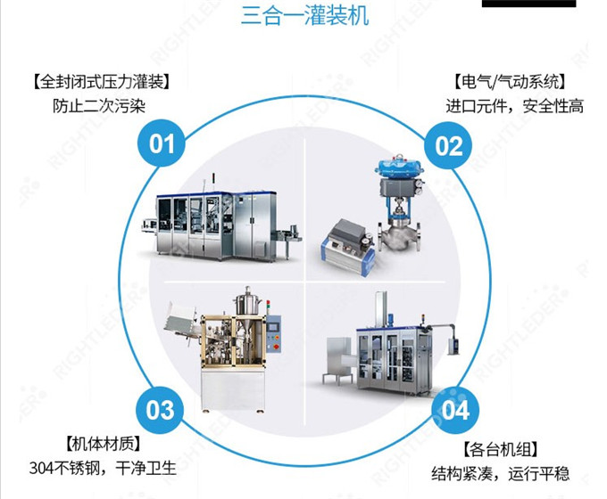 3.采用高精度.高速定量灌裝閥,液位準確無液損,確保優(yōu)良的灌裝質(zhì)量。