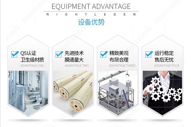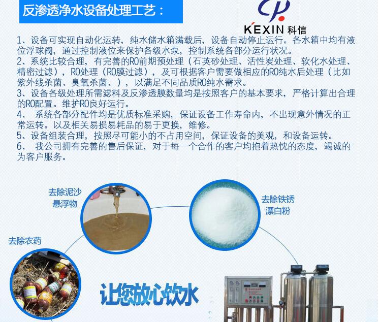 2.系統(tǒng)比較合理,有完善的RO前期預處理(石英砂處理、活性炭處理、軟化水處理、精密過濾),RO處理(RO膜過濾),及可根據(jù)客戶需要做相應(yīng)的RO純水后處理(比如紫外線殺菌、臭氧殺菌、),以滿足不同品質(zhì)RO純水需求。