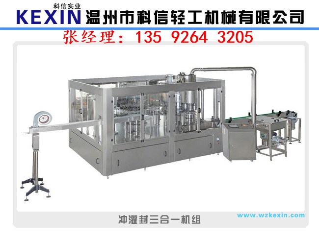 三合一機(jī)集沖洗、灌裝、封蓋于一體,是以國(guó)外先進(jìn)技術(shù)為基礎(chǔ),根據(jù)茶、果汁、等飲品的灌裝工藝要求研制而成的。灌裝溫度一般在82-85度左右的液體。